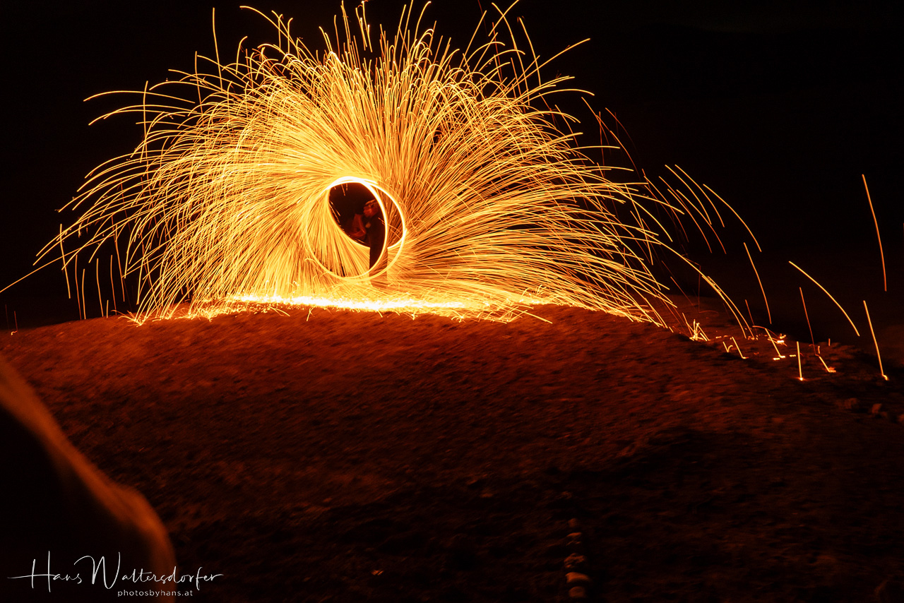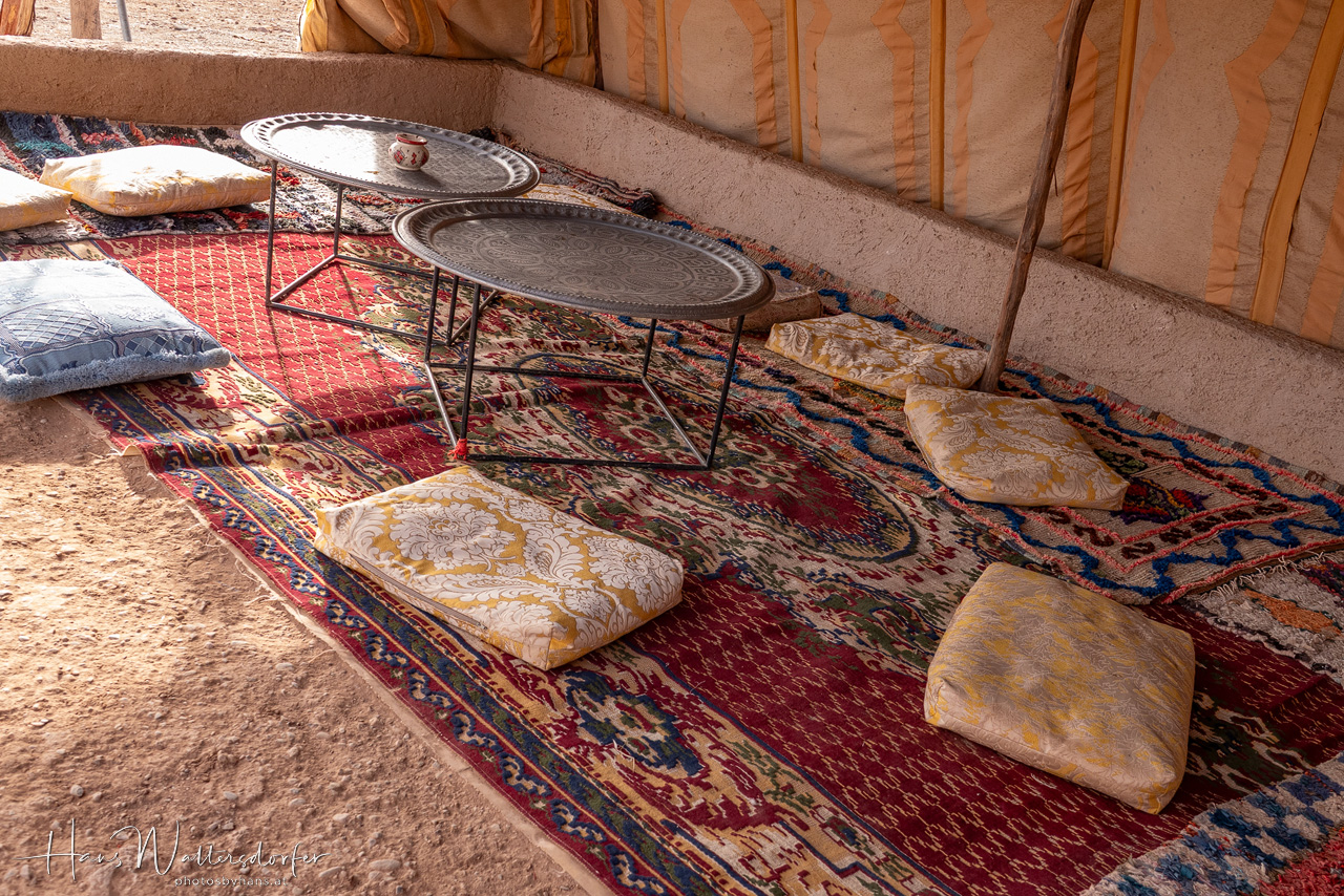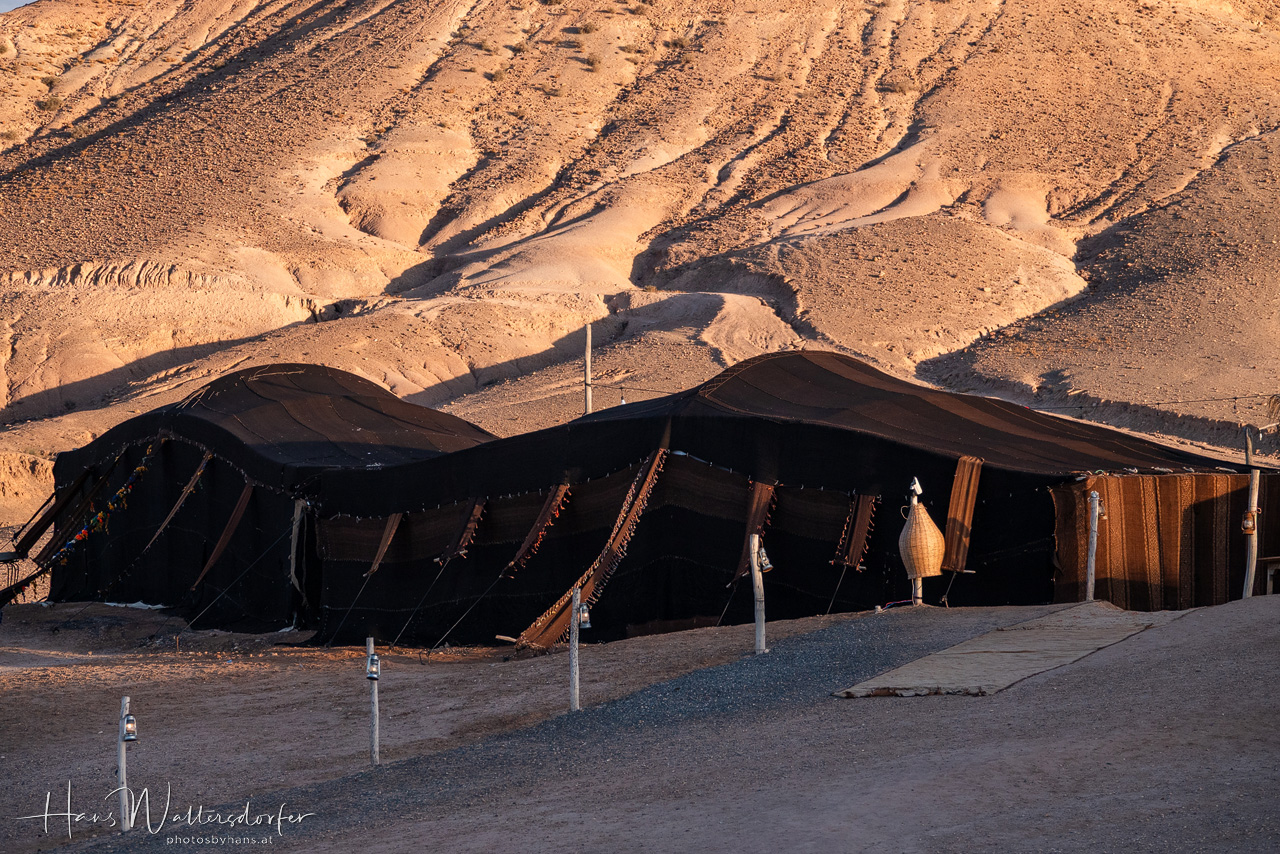 Ich bin für eine Quad-Tour in die Wüste nicht wirklich zu begeistern, da ich Gott sei Dank andere Erfahrungen von Wüste kenne. Aber das Argument, dass man so in der kurzen Zeit weiter in die Wüste hineinkommt und mehr sieht, überzeugt schließlich auch mich. Allerdings: Bei der Konzentration auf Vorderleute und Piste bleibt nicht viel Möglichkeit zum Schauen und Genießen, nur die kurze Teepause reicht für ein paar Fotos. Dann noch schnell ein Kamelritt zum Sonnenuntergang und ein Abendessen im Zelt mit Musik und Feuershow. In einem Minimum an Zeit ein Maximum an Wüste? Eine Gleichung, die für mich nicht stimmt. Schön war's trotzdem! Und vor allem: Wovon sollten die Menschen hier sonst leben, wenn nicht von Touristen, die bereit sind, für solche "Abenteuer" Geld auszugeben?