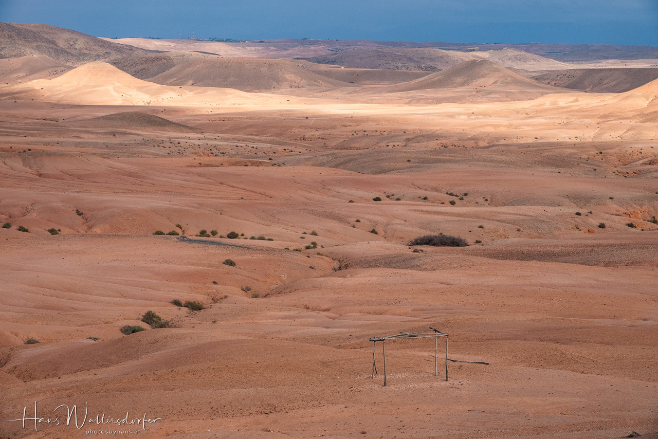 Die große Wüste - die Ausläufer der Sahara - ist zu weit entfernt von Marrakesch für einen Tagesausflug. Aber nur eine Stunde südwestlich von Marrakesch liegt die Agafay-Wüste.