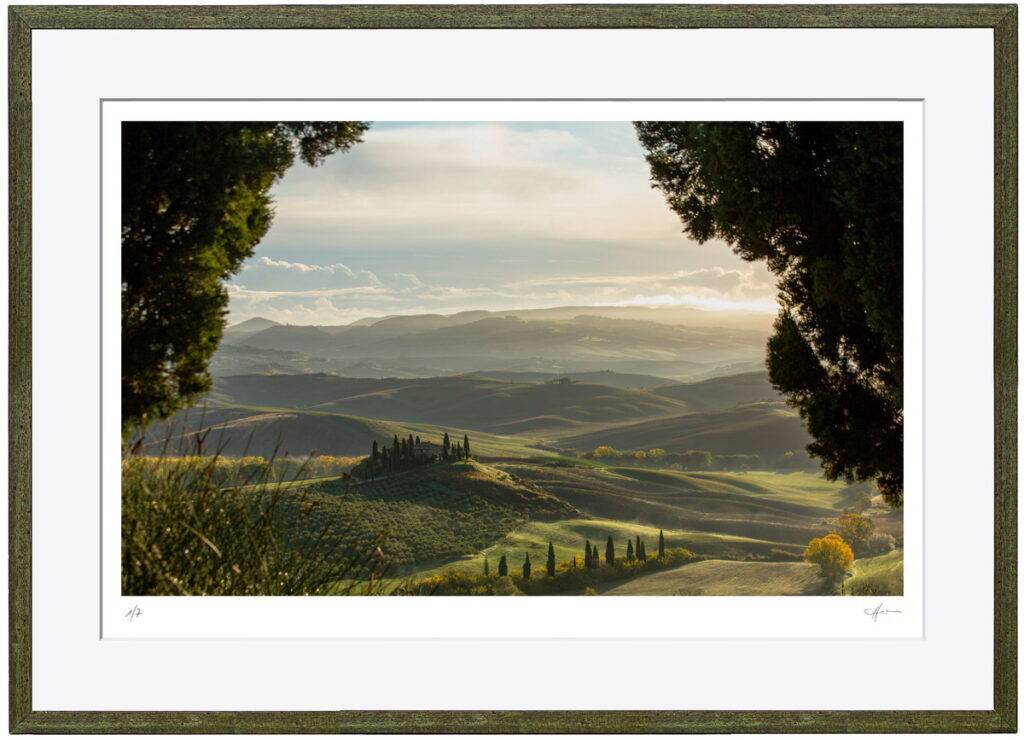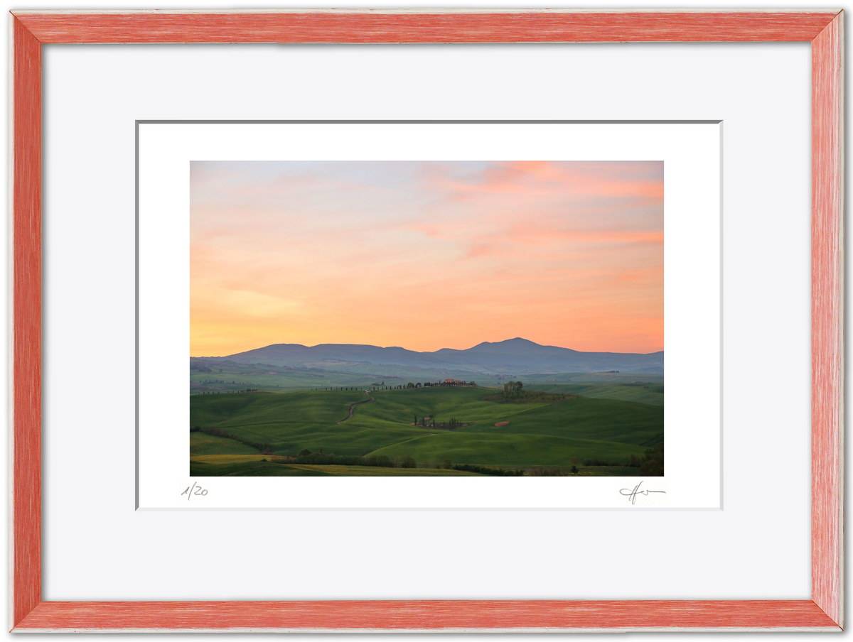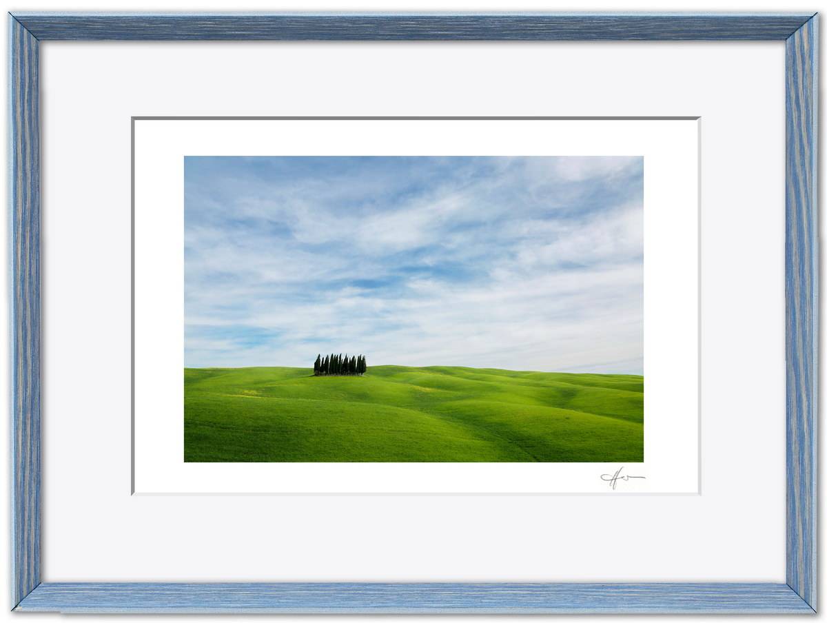 Je nach Motiv kann ein färbiges Passepartout den Bildeindruck effektiv verstärken. Mehrere Passepartoutfarben stehen für die Formate ab 30 x 40 cm zur Auswahl.