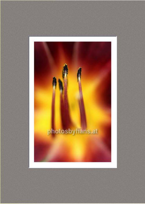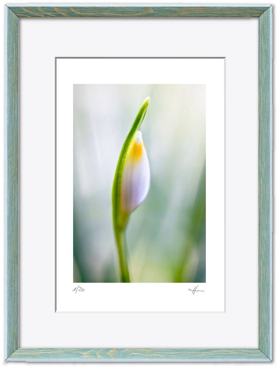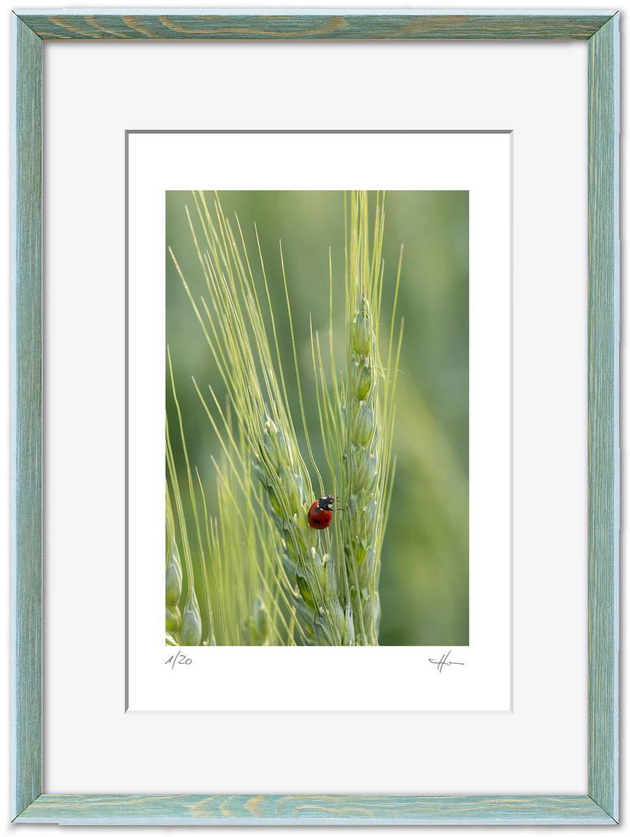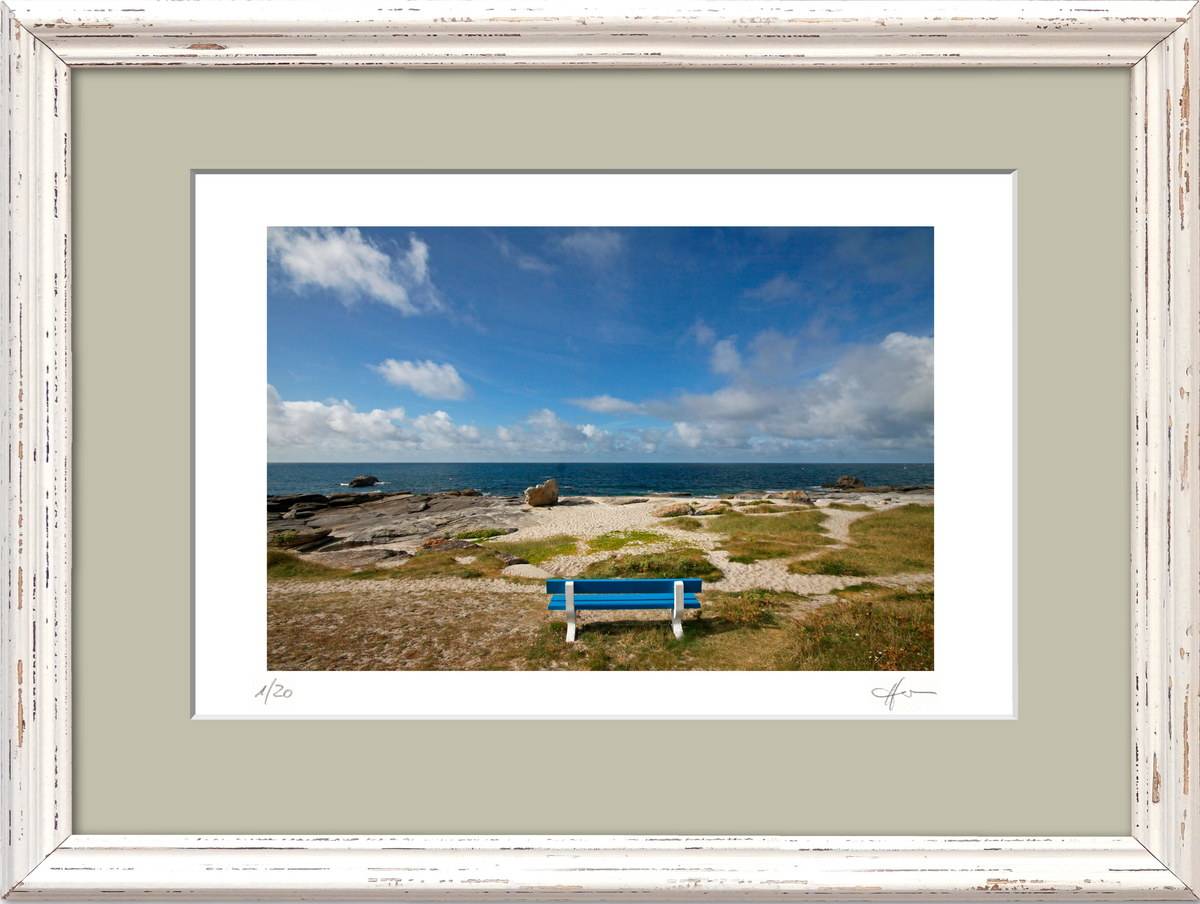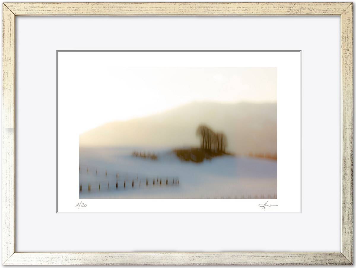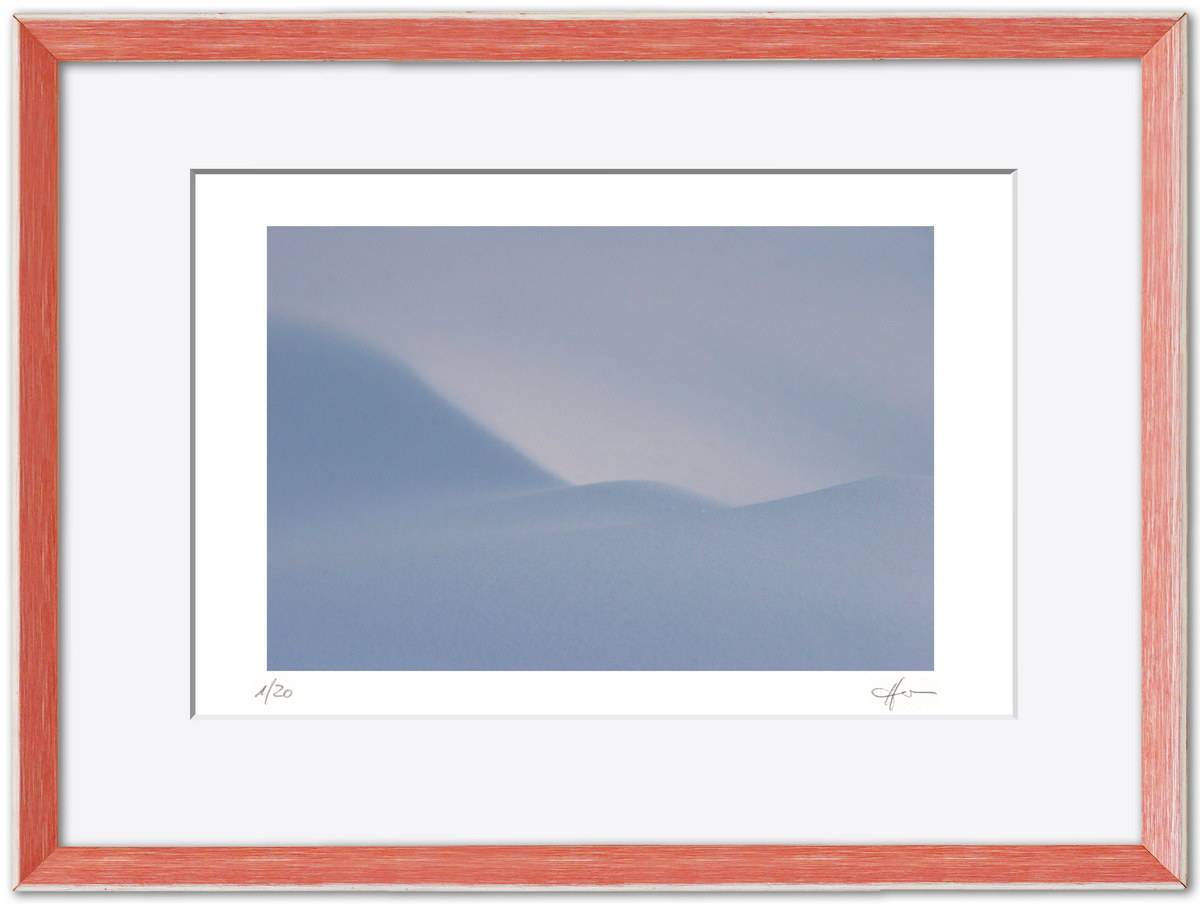 Standardmäßig fasse ich meine Bilder in weiße Passepartouts in gängigen Formaten mit edlem Schrägschnitt – bei den kleineren Formaten in vorgefertigter Form, größere Passepartouts (40 x 50 cm und 50 x 70 cm) schneide ich selbst.
