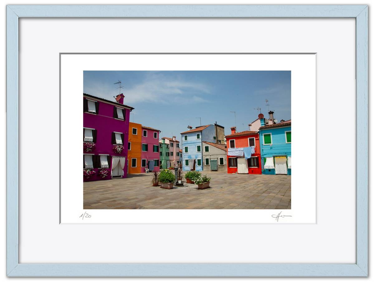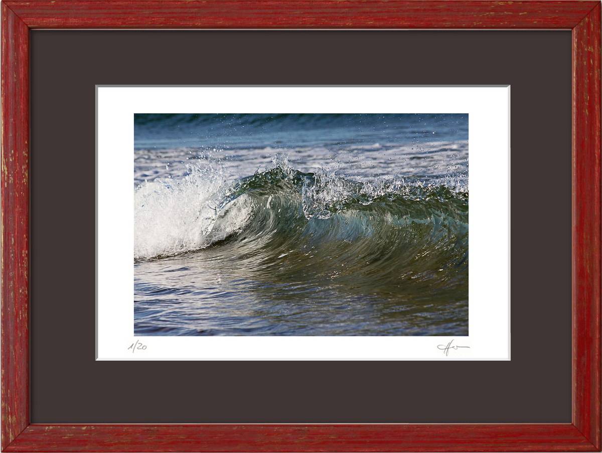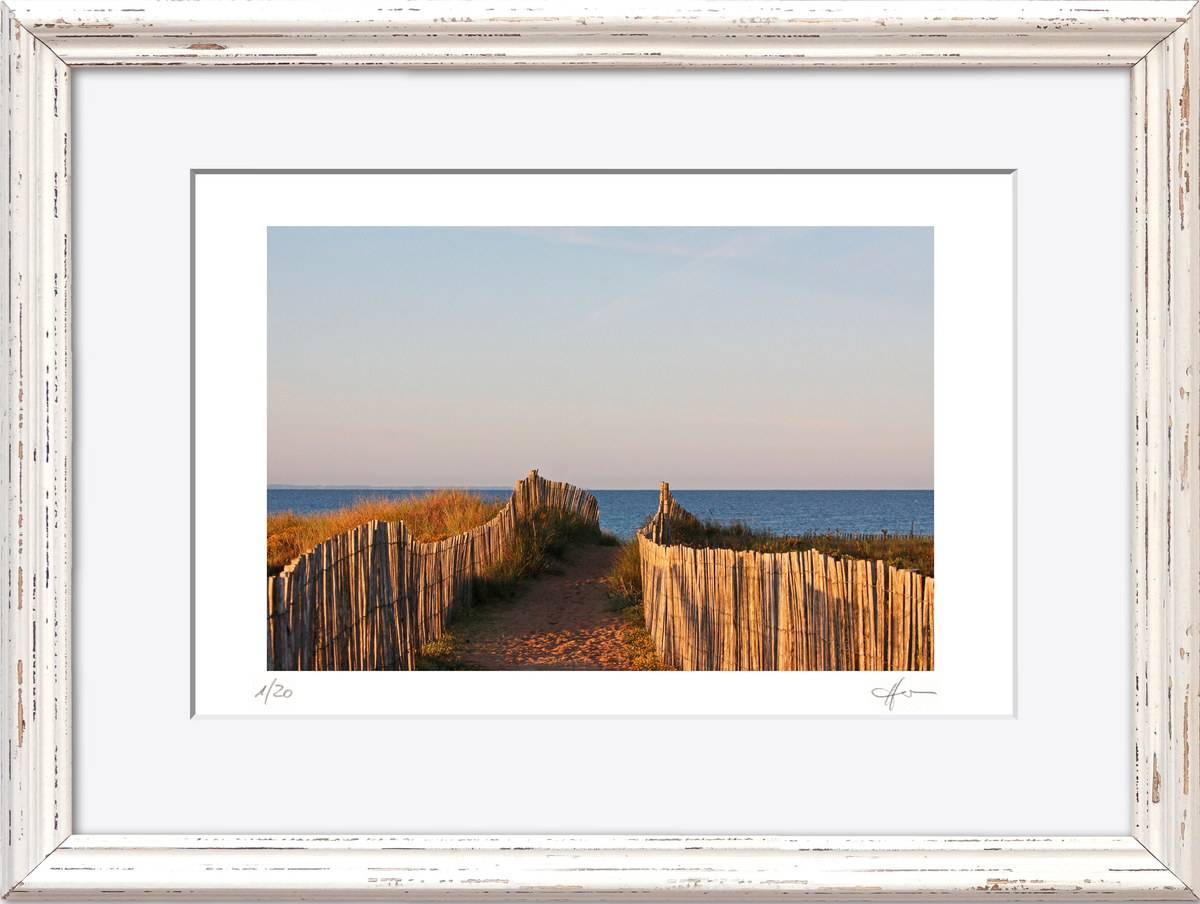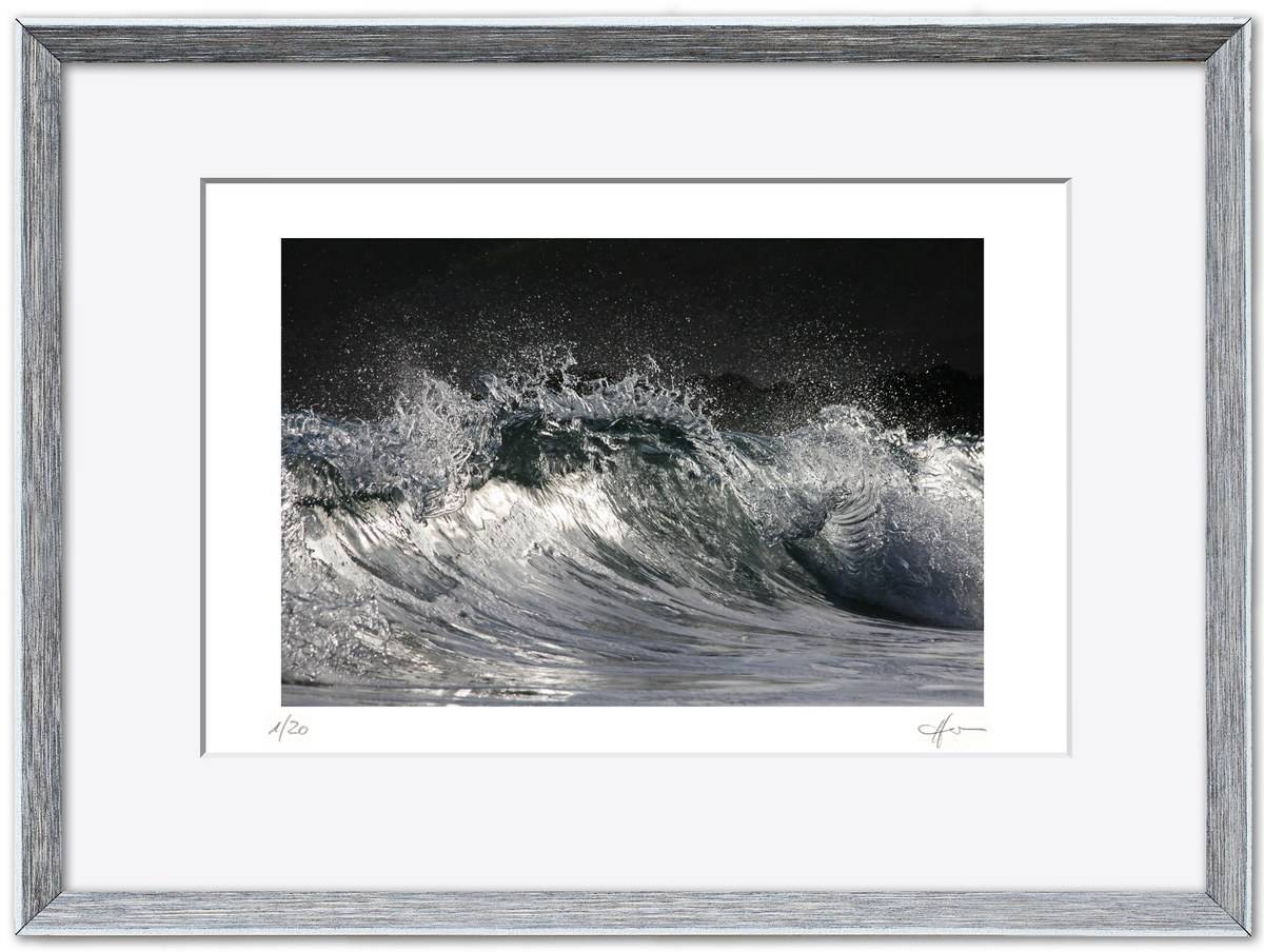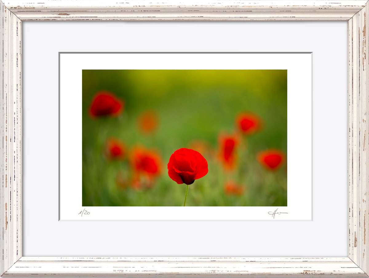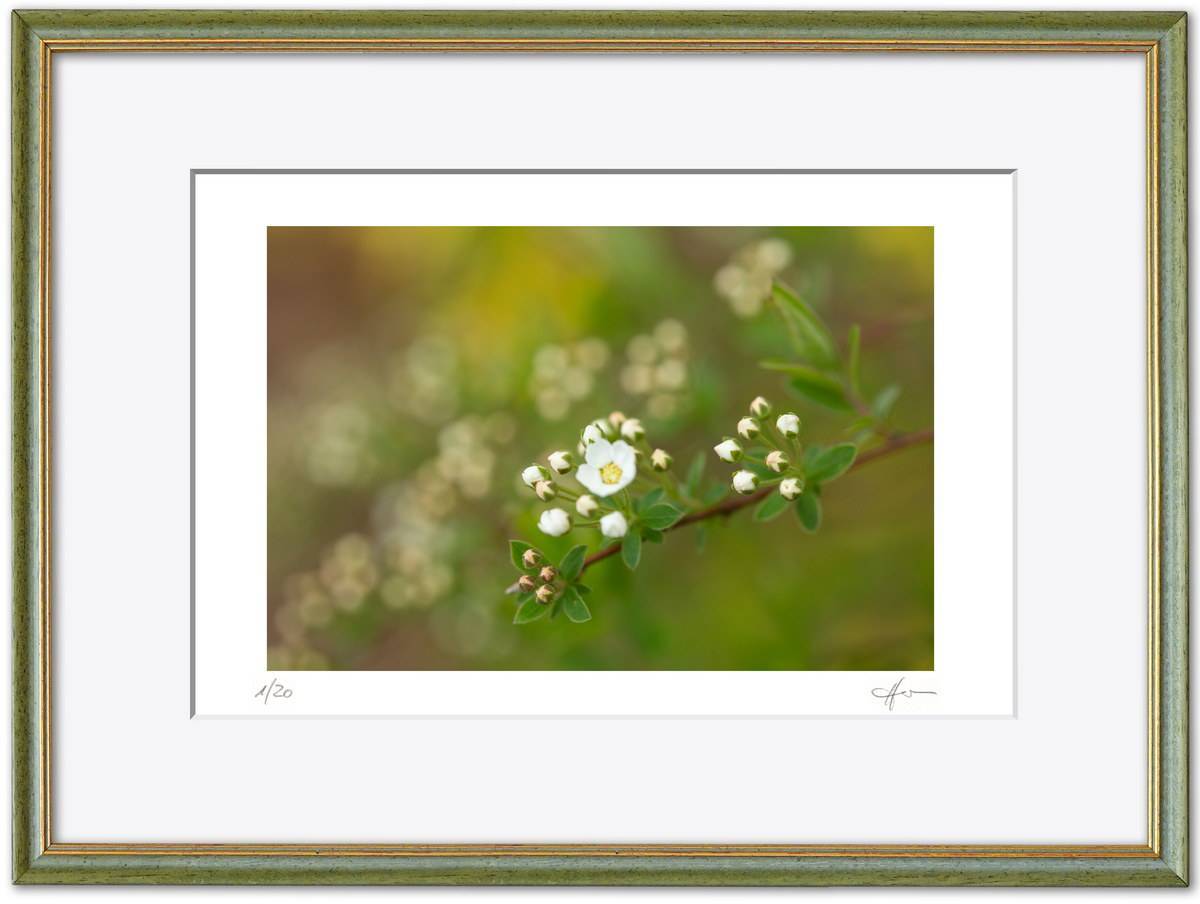 Standardmäßig fasse ich meine Bilder in weiße Passepartouts in gängigen Formaten mit edlem Schrägschnitt – bei den kleineren Formaten in vorgefertigter Form, größere Passepartouts (40 x 50 cm und 50 x 70 cm) schneide ich selbst.