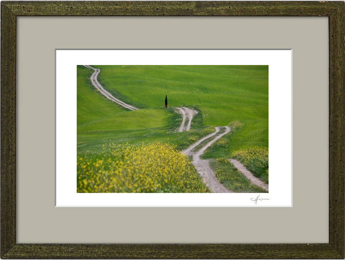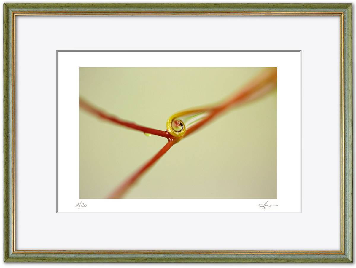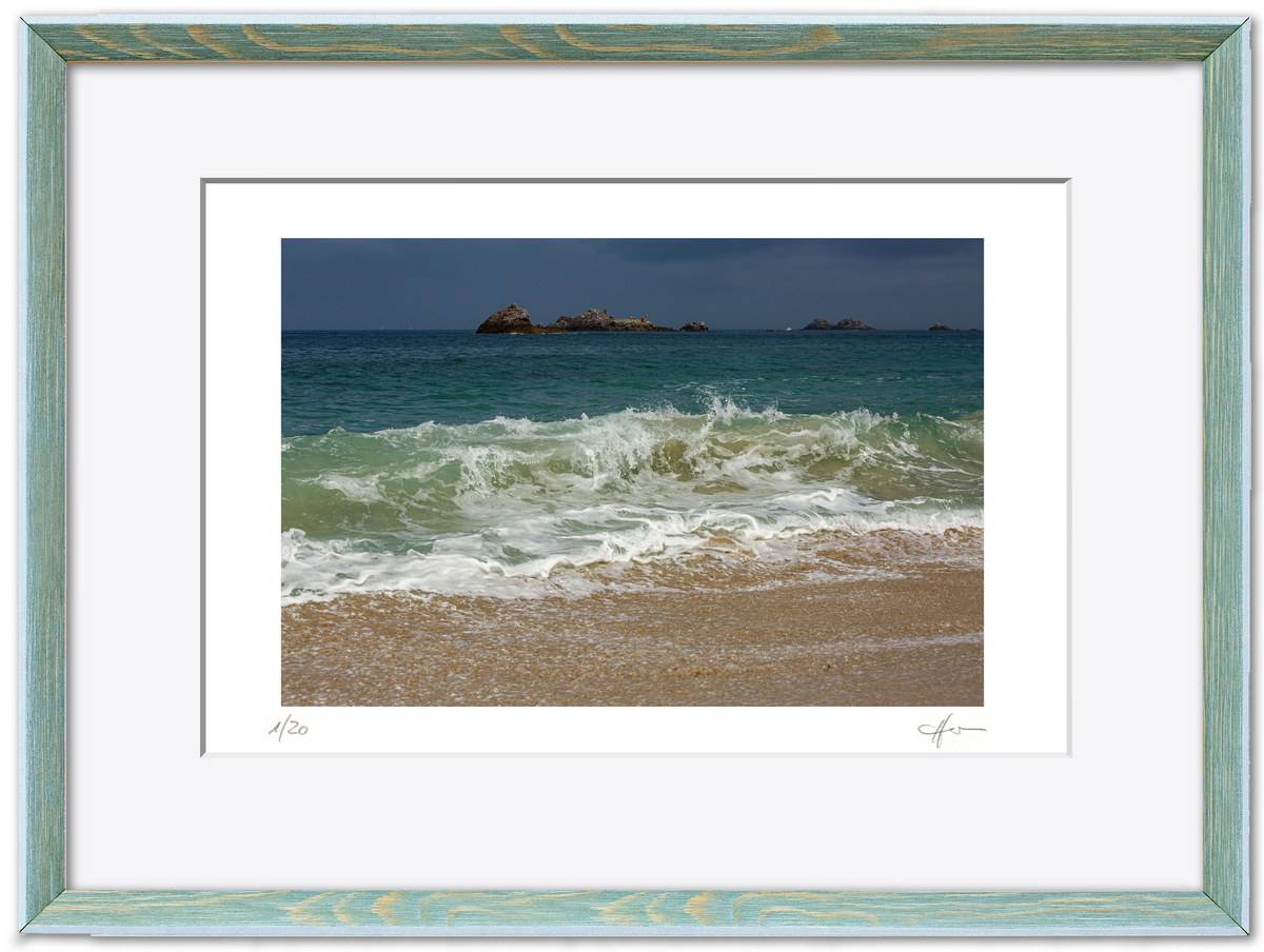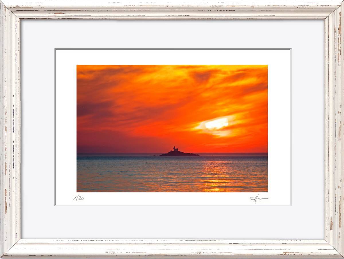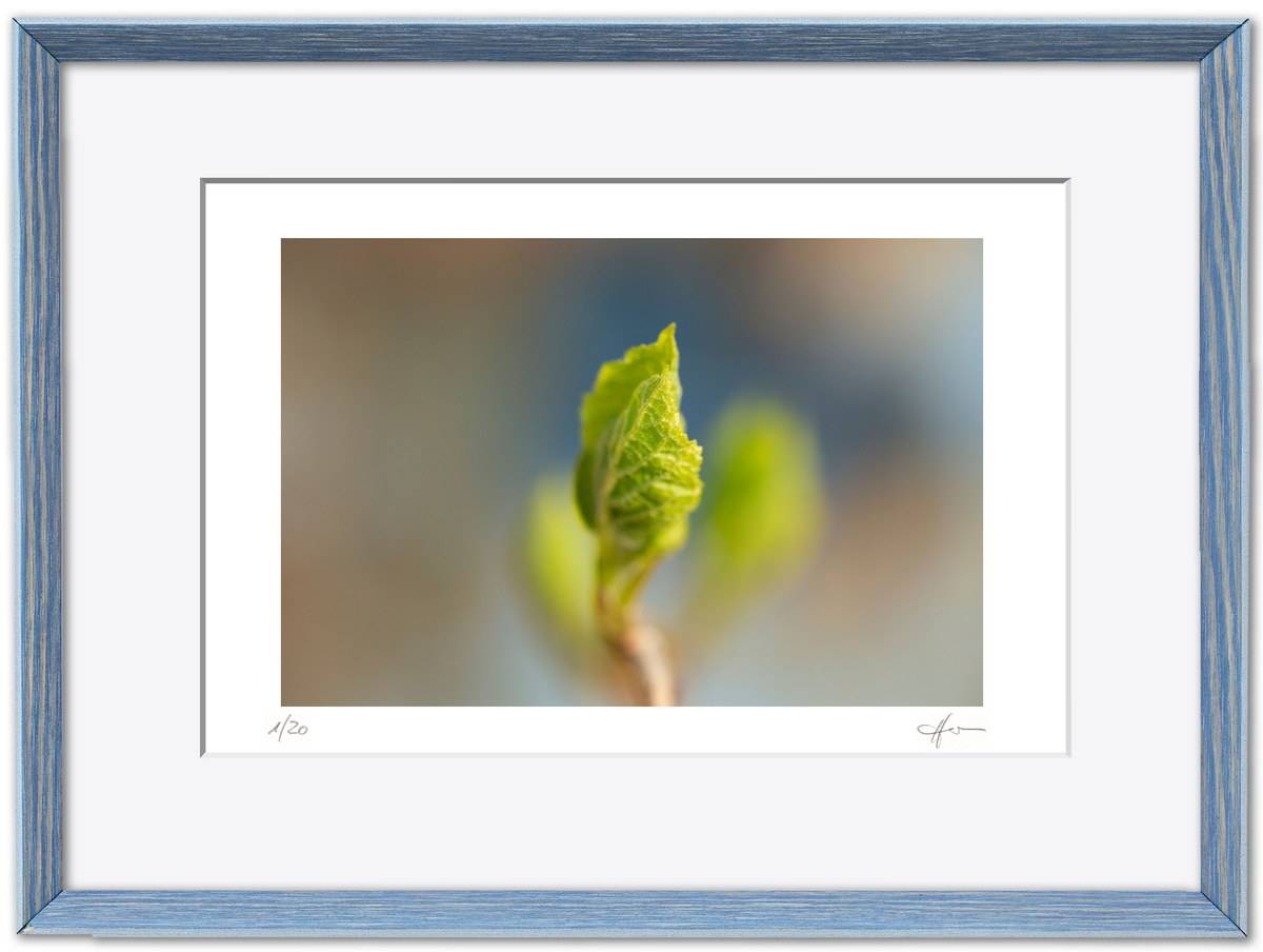 Standardmäßig fasse ich meine Bilder in weiße Passepartouts in gängigen Formaten mit edlem Schrägschnitt – bei den kleineren Formaten in vorgefertigter Form, größere Passepartouts (40 x 50 cm und 50 x 70 cm) schneide ich selbst.
