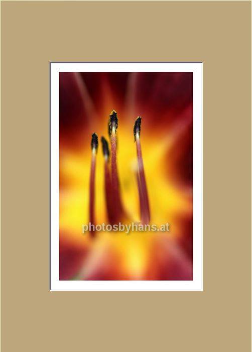 Alle meine Bilder werden von mir selbst vorzugsweise auf Hahnemühle-Papieren (in der Regel matte Baumwollpapiere) bis zu einer Größe von ca. 40 x 60 cm gedruckt, auf säurefreien Karton aufgezogen und in edlen, handgeschnittenen Passepartouts montiert. Diese sorgfältige Handverarbeitung garantiert die Qualität meiner Bilder mit einer jahrzehntelangen Farbbeständigkeit.