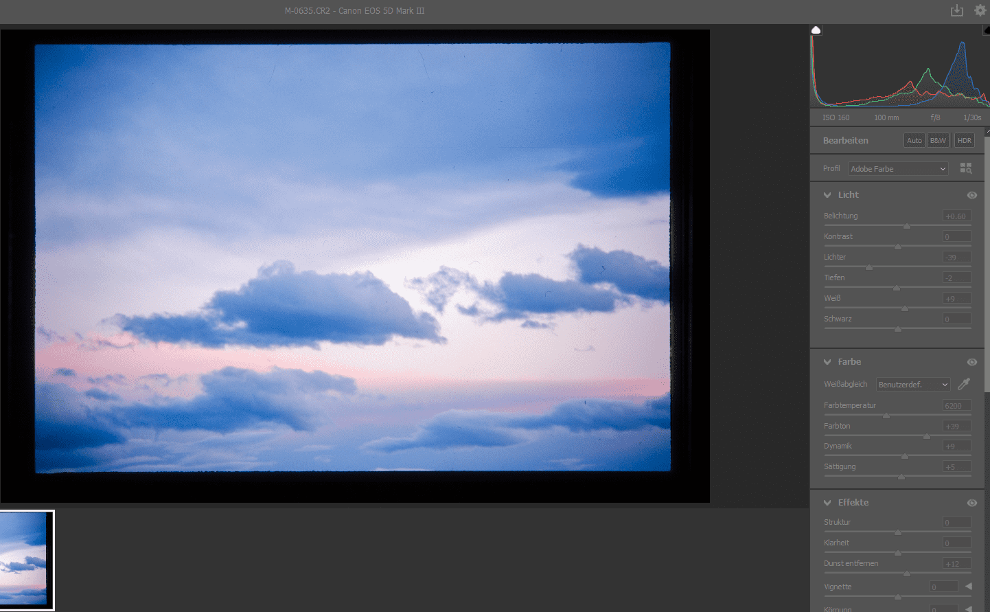 Sind diese Einstellungen für das erste Bild vorgenommen, lassen sich folgende ähnlich belichtete Bilder der gleichen Serie in der Regel mit gelegentlichen kleinen Nachjustierungen relativ zügig entwickeln.