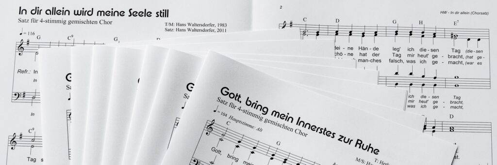 Der Chorsatz für das Abendlied „In dir allein wird meine Seele still“ wurde 2011 neu geschaffen. Als zweites Lied ist der meditative Gesang „Gott, bring mein Innerstes zur Ruhe“ auf diesem Blatt enthalten