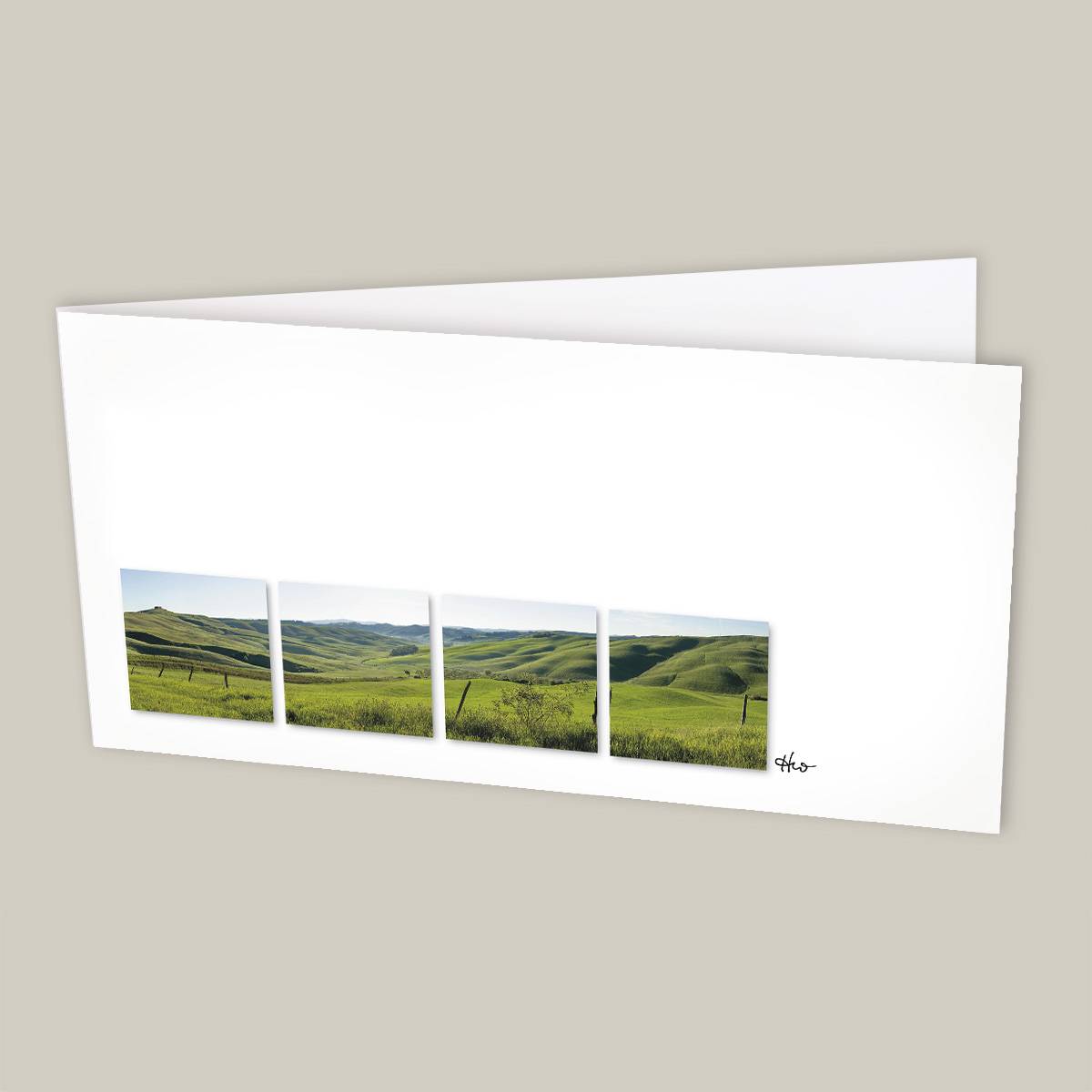 Diverse Landschaftspanoramen, jeweils in 4 kleine Quadrate (Inchies) aufgeteilt, als Fotobillets gestaltet.