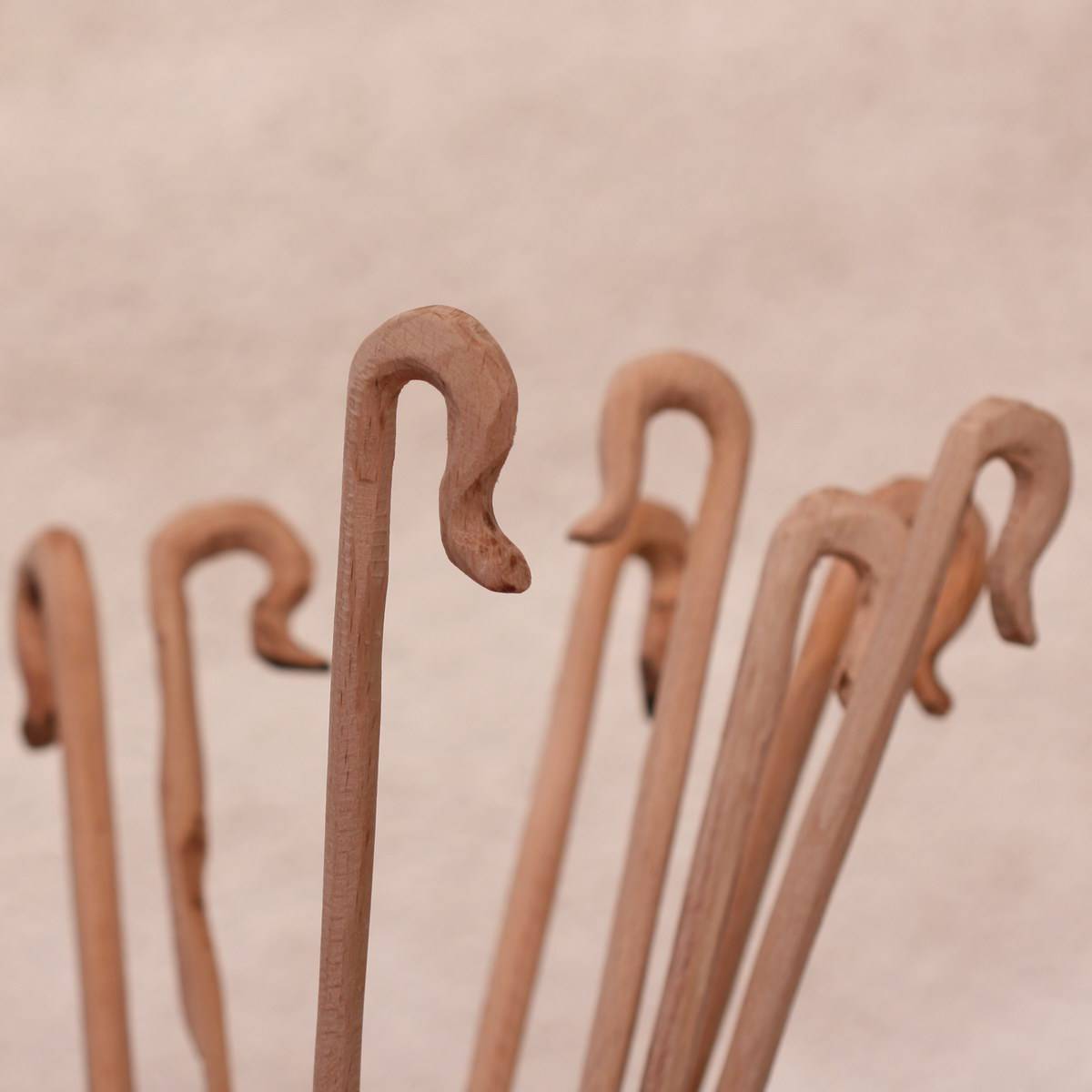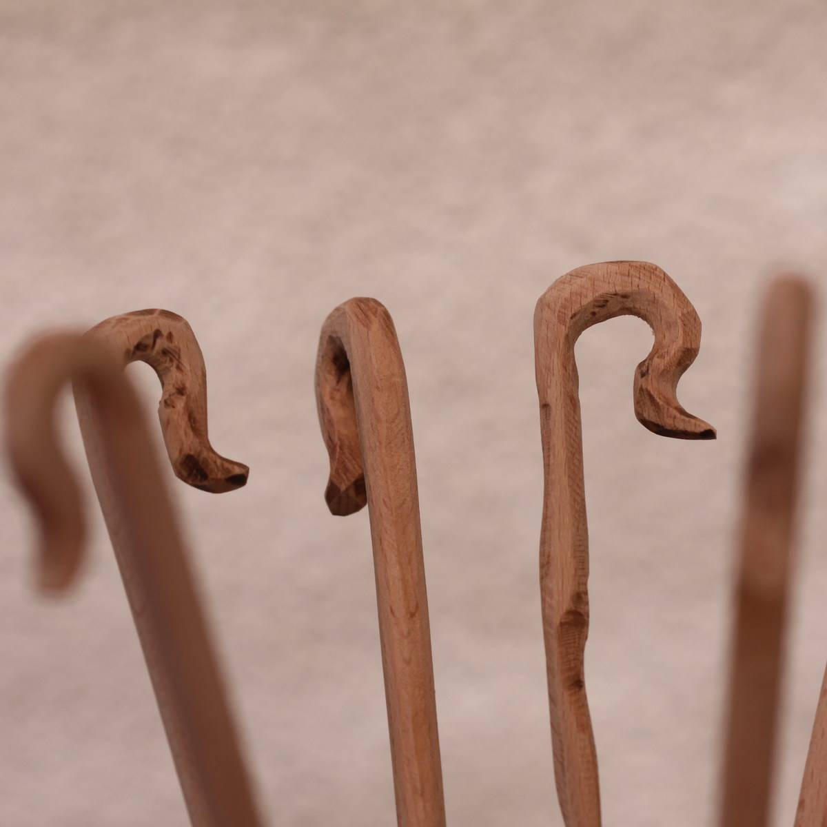 für Biblischen Erzählfiguren, formschöner Hirtenstab oder Wanderstab (Typ „Josefsstab“), handgefertigt aus Buchenholz, jeder einzelne ein Unikat Länge ca. 35 cm – ideal für 30-cm-Figuren