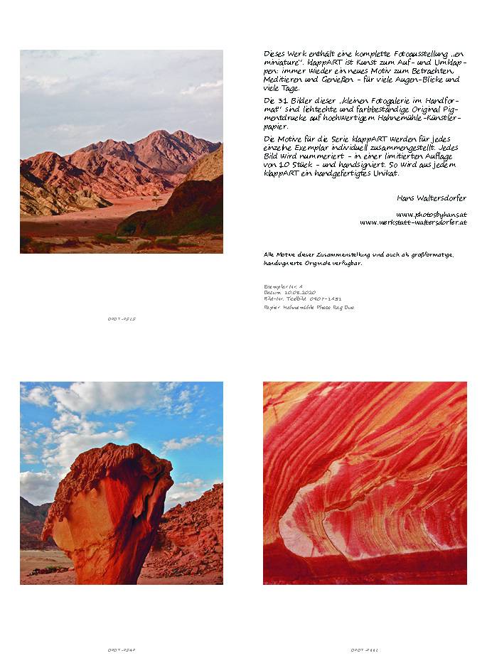 klappARTs sind kleine thematische Bildzusammenstellungen in Form von Aufstellbüchern – eine komplette Fotoausstellung “en miniature”.