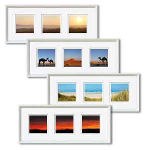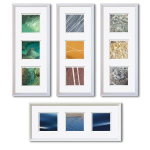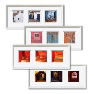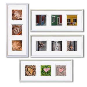 Die Herausforderung der Serie – drei (verschiedene) Fotos (10 x 10 cm) in einem gemeinsamen Passepartout (50 x 20 cm), Hochformat oder Querformat