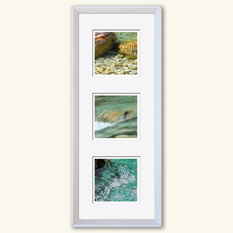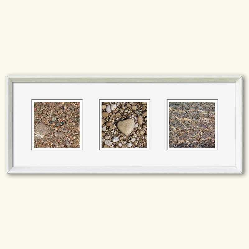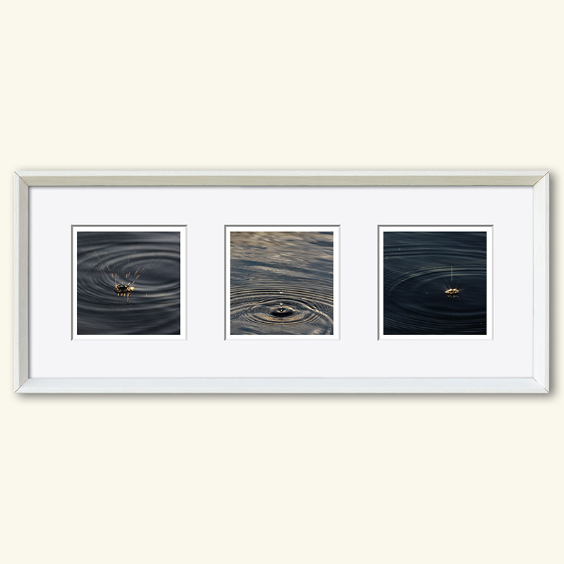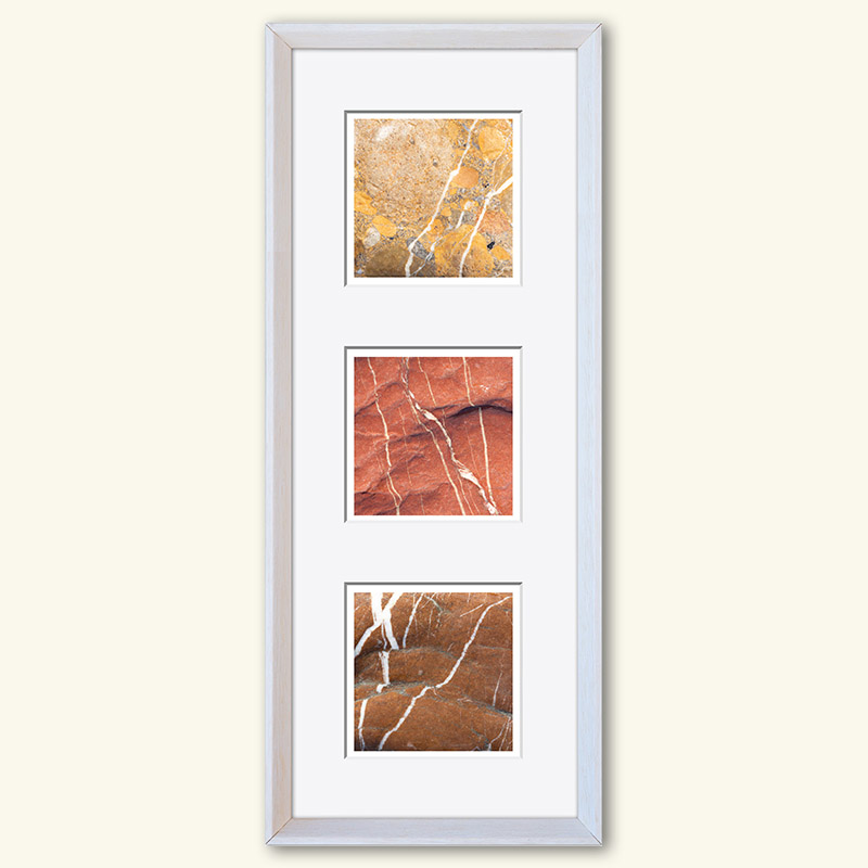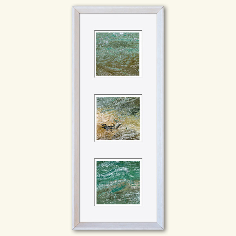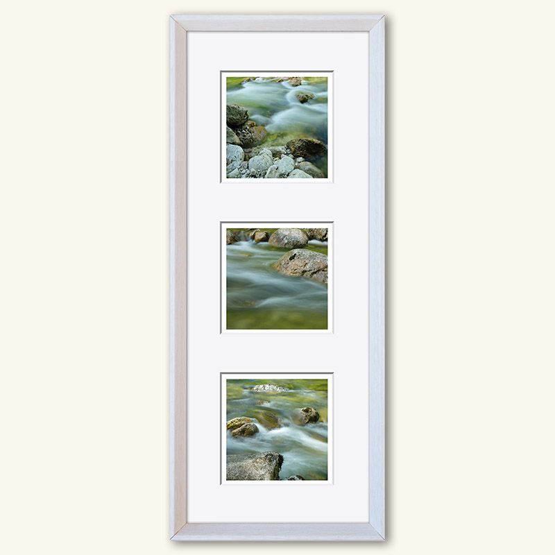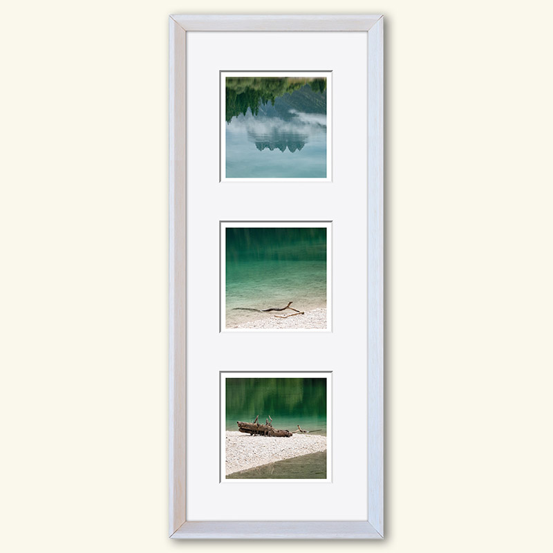 Die Herausforderung der Serie – drei (verschiedene) Fotos (10 x 10 cm) in einem gemeinsamen Passepartout (50 x 20 cm), Hochformat oder Querformat