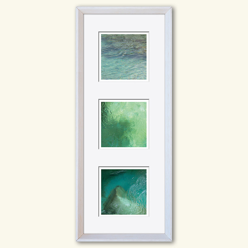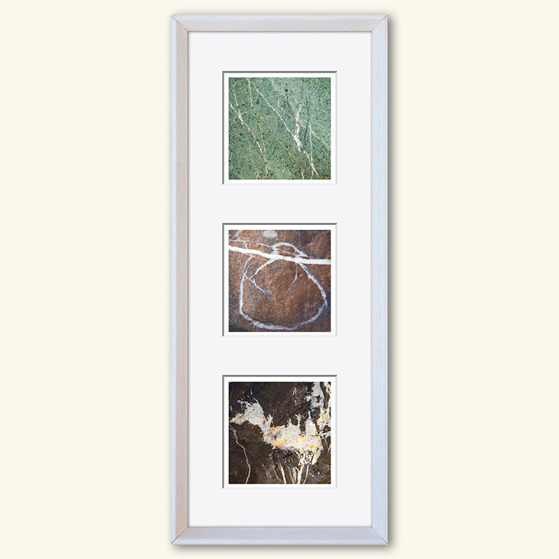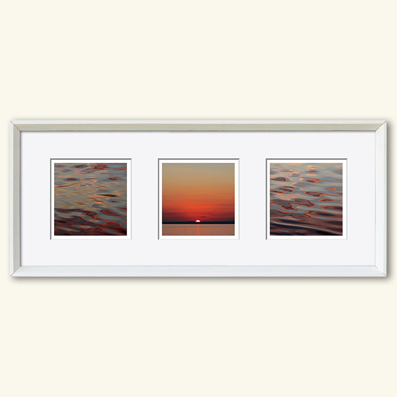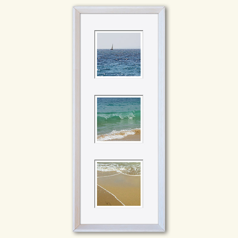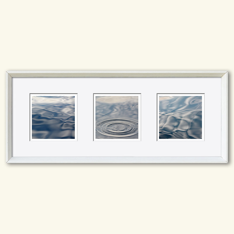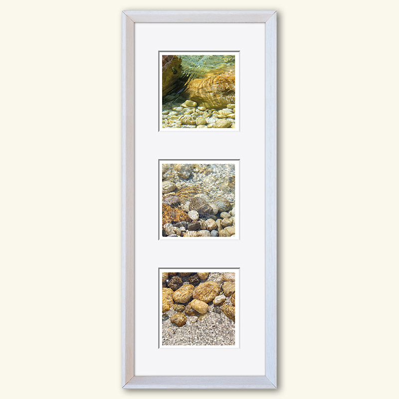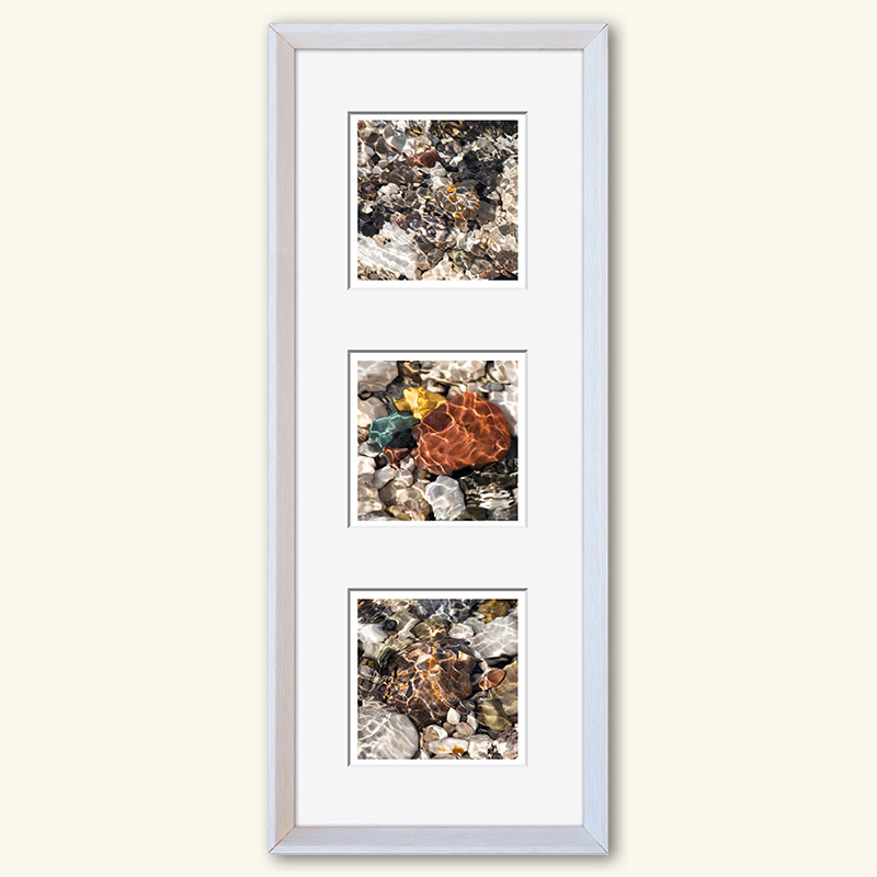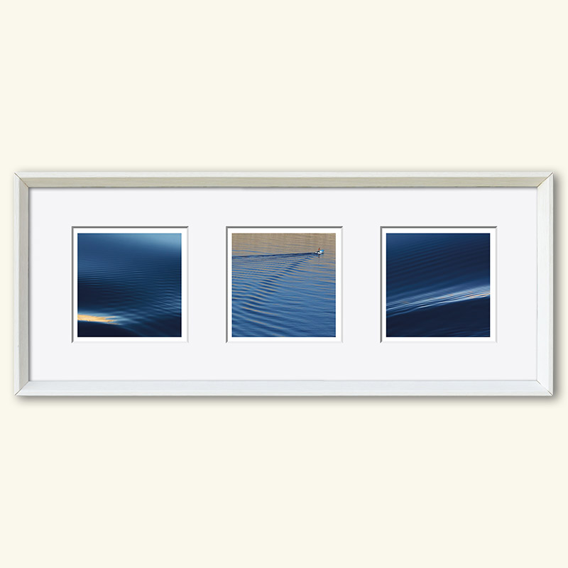 Die Herausforderung der Serie – drei (verschiedene) Fotos (10 x 10 cm) in einem gemeinsamen Passepartout (50 x 20 cm), Hochformat oder Querformat