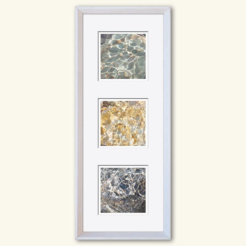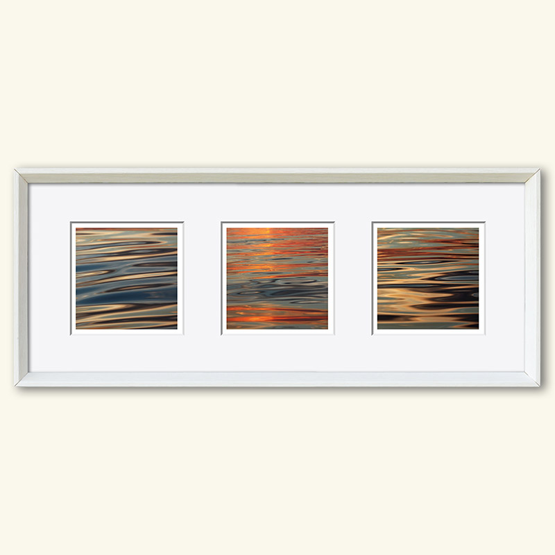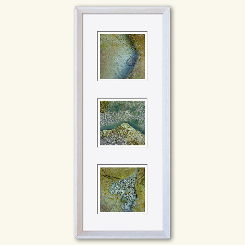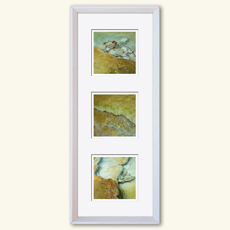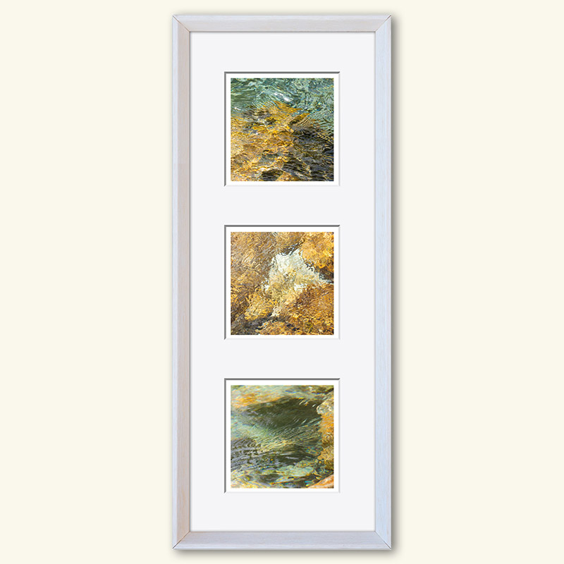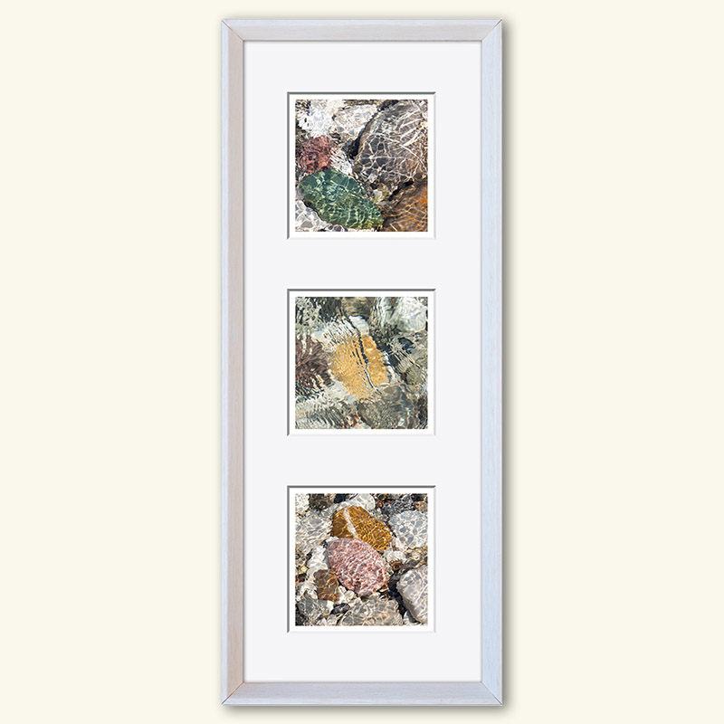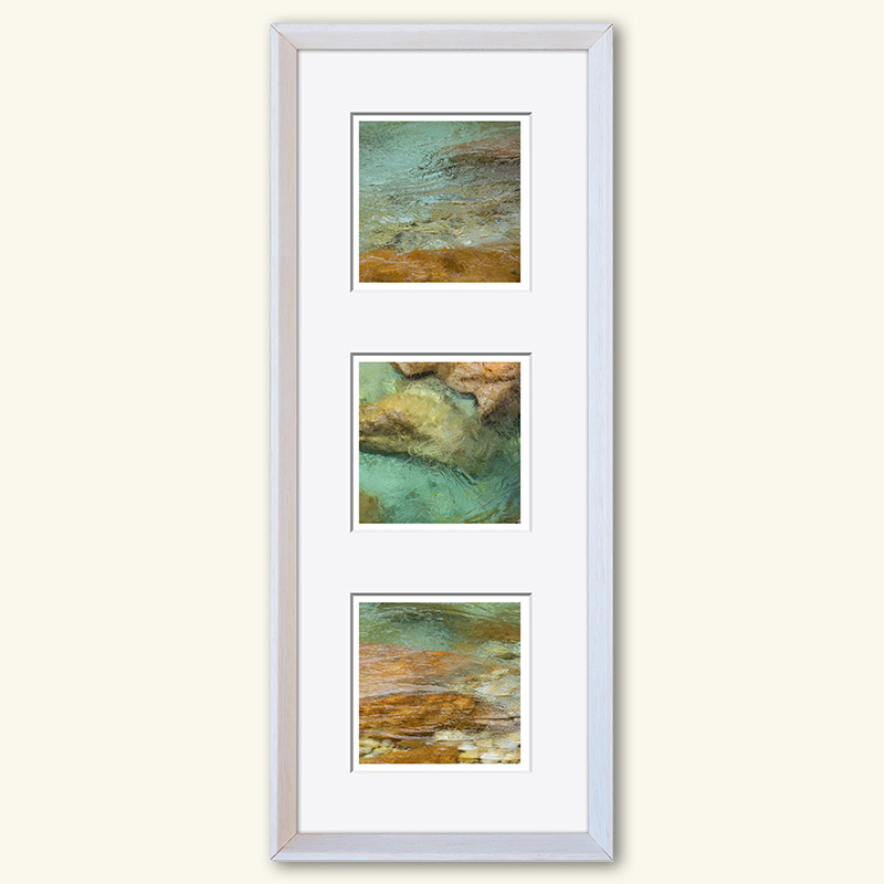 Die Herausforderung der Serie – drei (verschiedene) Fotos (10 x 10 cm) in einem gemeinsamen Passepartout (50 x 20 cm), Hochformat oder Querformat