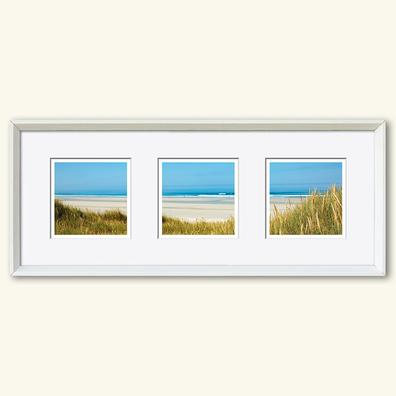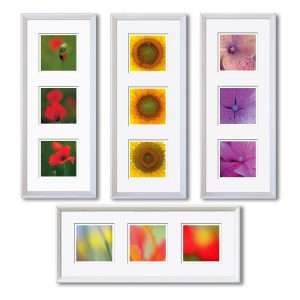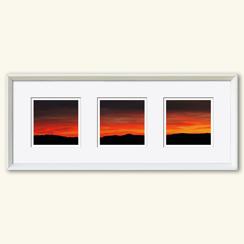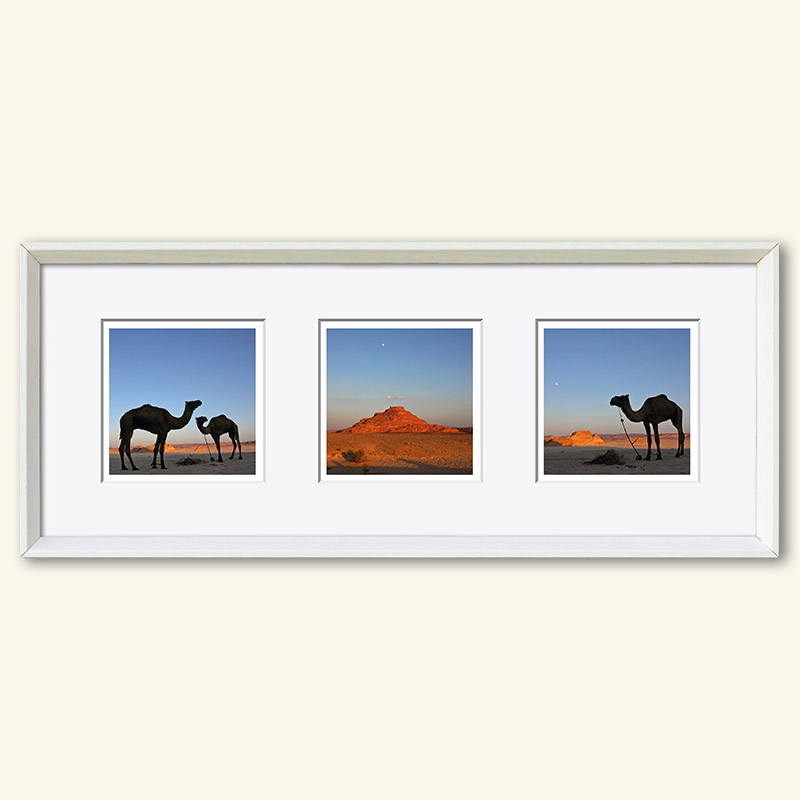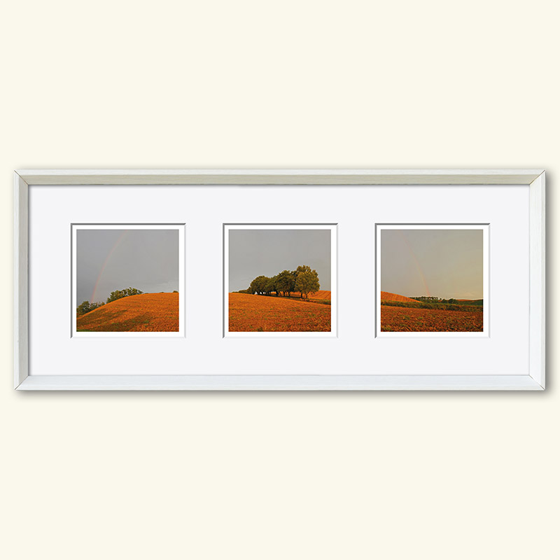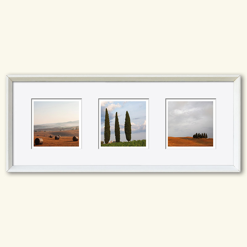 Die Herausforderung der Serie – drei (verschiedene) Fotos (10 x 10 cm) in einem gemeinsamen Passepartout (50 x 20 cm), Hochformat oder Querformat